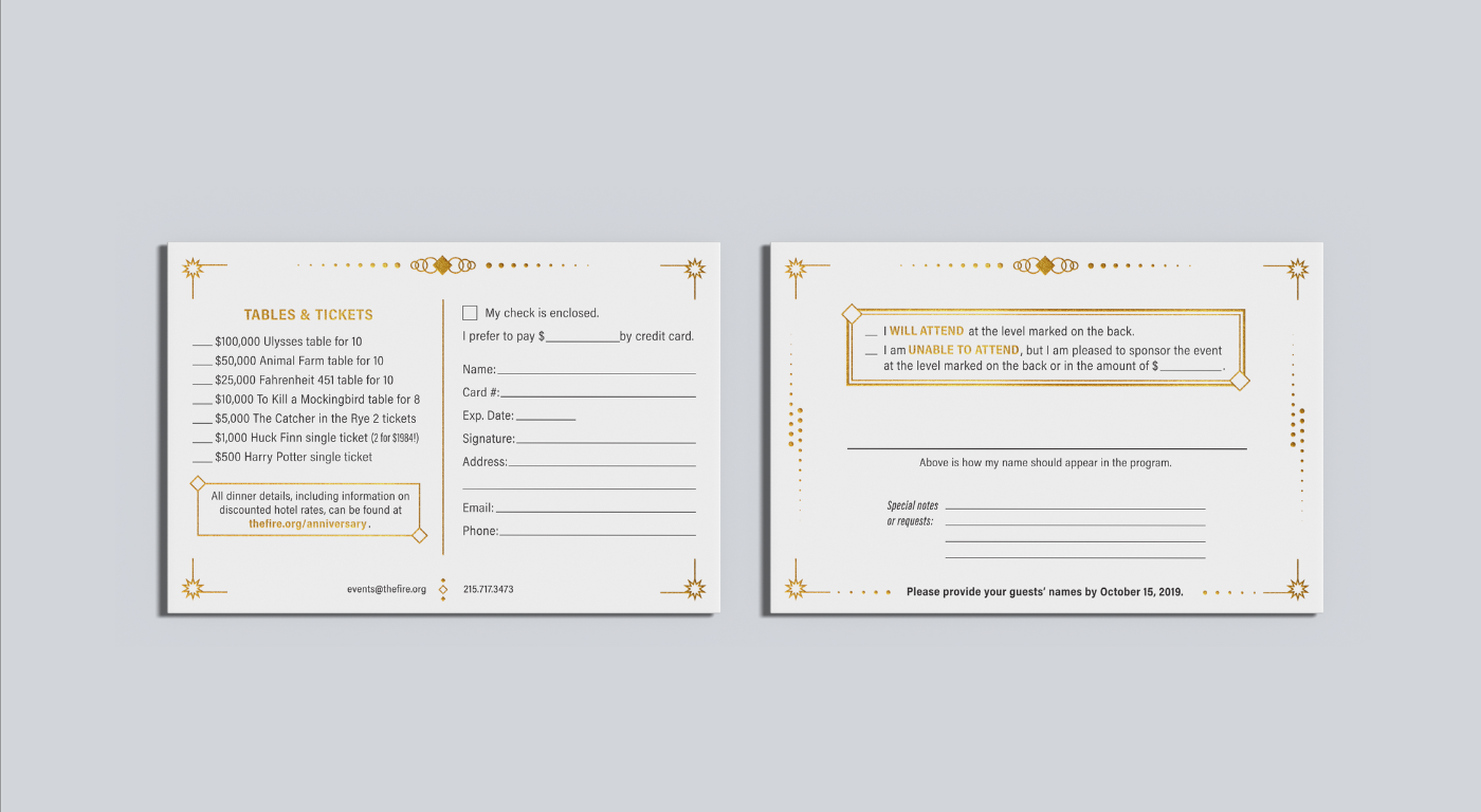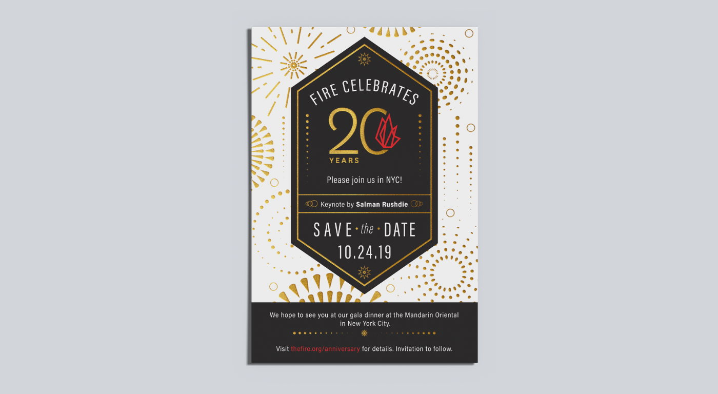 FIRE marked its 20th anniversary with a year-long celebration culminating in a grand gala held in New York City. We kicked off the campaign with a unique, temporary logo to celebrate the occasion.